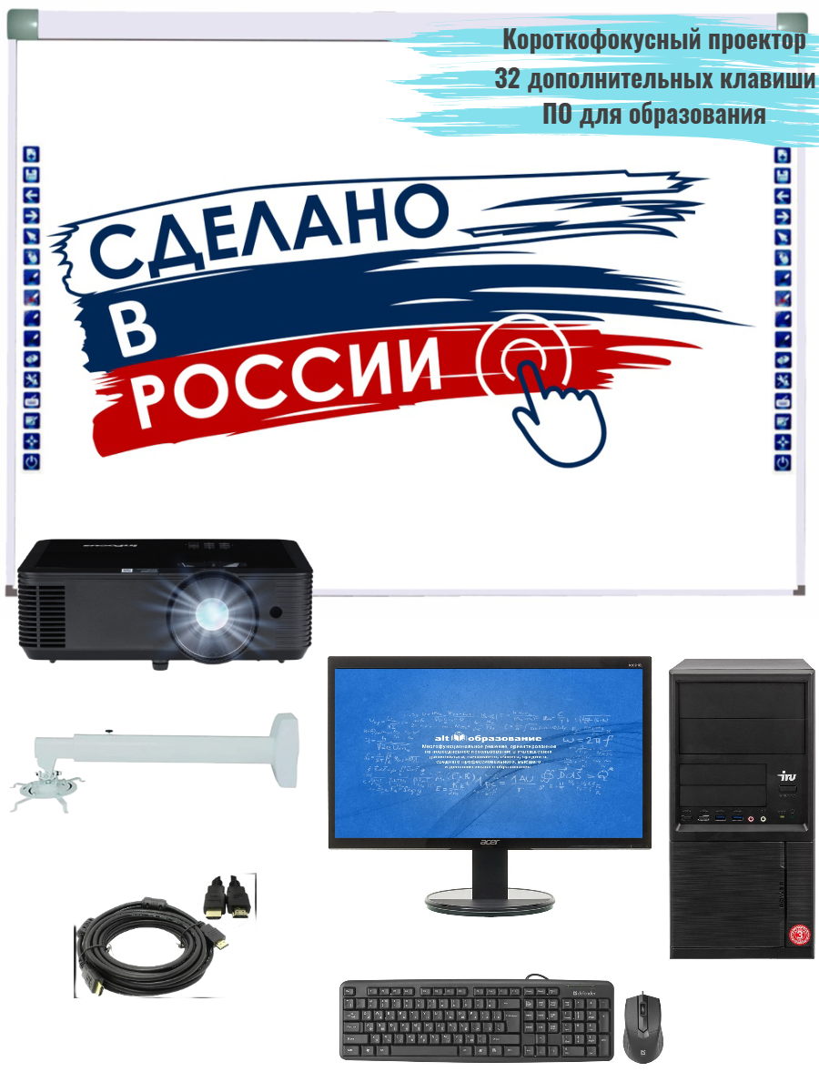 Интерактивный программно-аппаратный комплекс стационарный (интерактивная доска, проектор, крепление): интерактивная доска 82 дюйма, 20 касаний, 32 клавиши, 16:9, с короткофокусным проектором, крепление, кабель , АРМ реестр Минпромторг