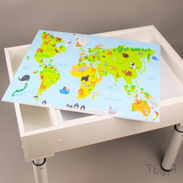 Крышку стола в закрытом положении можно использовать в качестве столешницы для занятий.