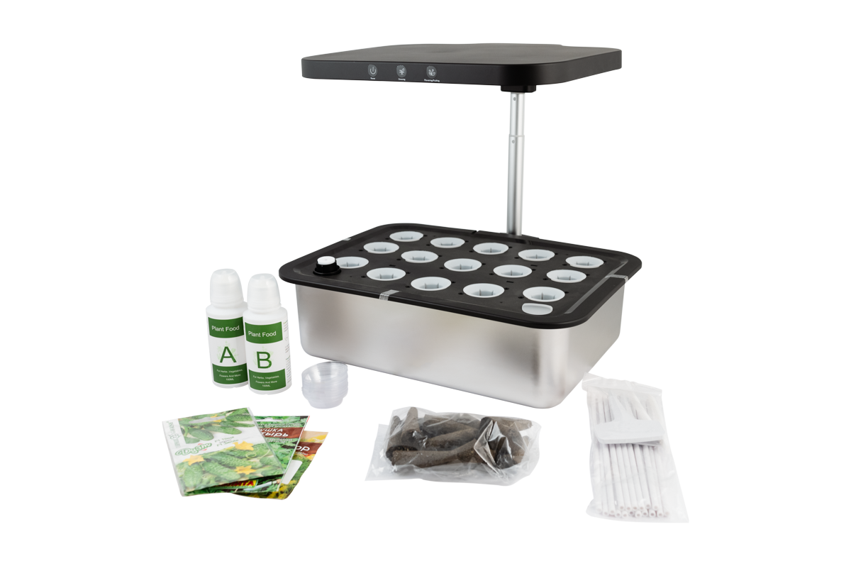 Гидропонная установка с функцией мониторинга температуры и освещения (12 лунок для растений, подкормка, посадочные пробки, набор семян) - 1 шт.