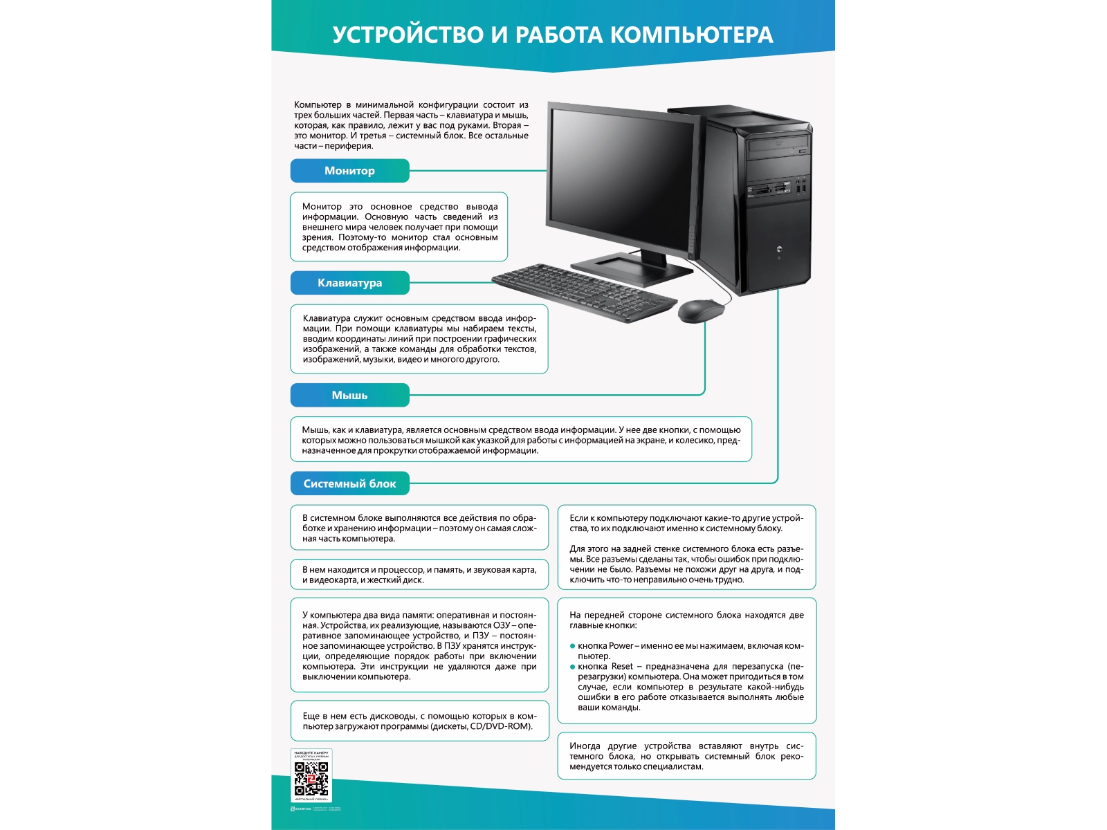 Стенды предназначены для наглядного отображения информации об устройстве персонального компьютера и поэтапной схеме его работы при включении.