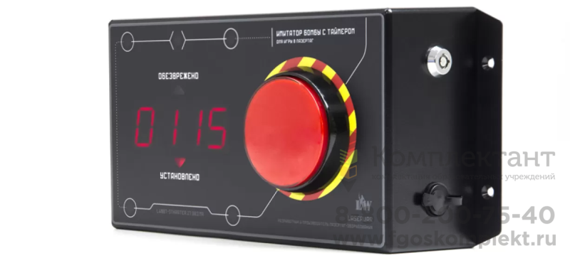 Модернизированная версия лазертаг-бомбы. «Кратер» борется с читерами, оснащен семисегментным индикатором и упакован в ударопрочный корпус.В «Кратере» мы использовали контрастные цвета, чтобы подчеркнуть важные элементы и не отвлекать игрока второстепенными деталями. Но при этом девайс интересно рассматривать: фирменный шрифт, маркировка изделия и логотип LASERWAR добавляют очков к общему впечатлению.Устройство выполнено в черном пластиковом корпусе. Благодаря специальным проушинам на задней крышке изделие можно зафиксировать на стене, что удобно и практично при играх в помещенииБомба включается поворотом ключа. Нажимаем и удерживаем красную кнопку 3 секунды, на экране дисплея появится надпись «Fire». Так устройство требует подтверждения, что игрок, закладывающий бомбу, «жив». Выстрелив в девайс, лазертаг-боец активирует обратный отсчет до взрыва.Разминирование производится аналогичным образом. Удерживаем кнопку 5 секунд, подтверждаем выстрелом, что нас не убили, и бомба разминирована. Если бойца «убьют» в процессе деактивации, то отсчет времени продолжится. Никаких споров, кто в кого попал, был ли жив игрок или нет.«Кратер» это: - стильный дизайн,- ударопрочный корпус,- 36 часов автономной работы,- простая настройка,- возможность закрепить игровую бомбу на стене.