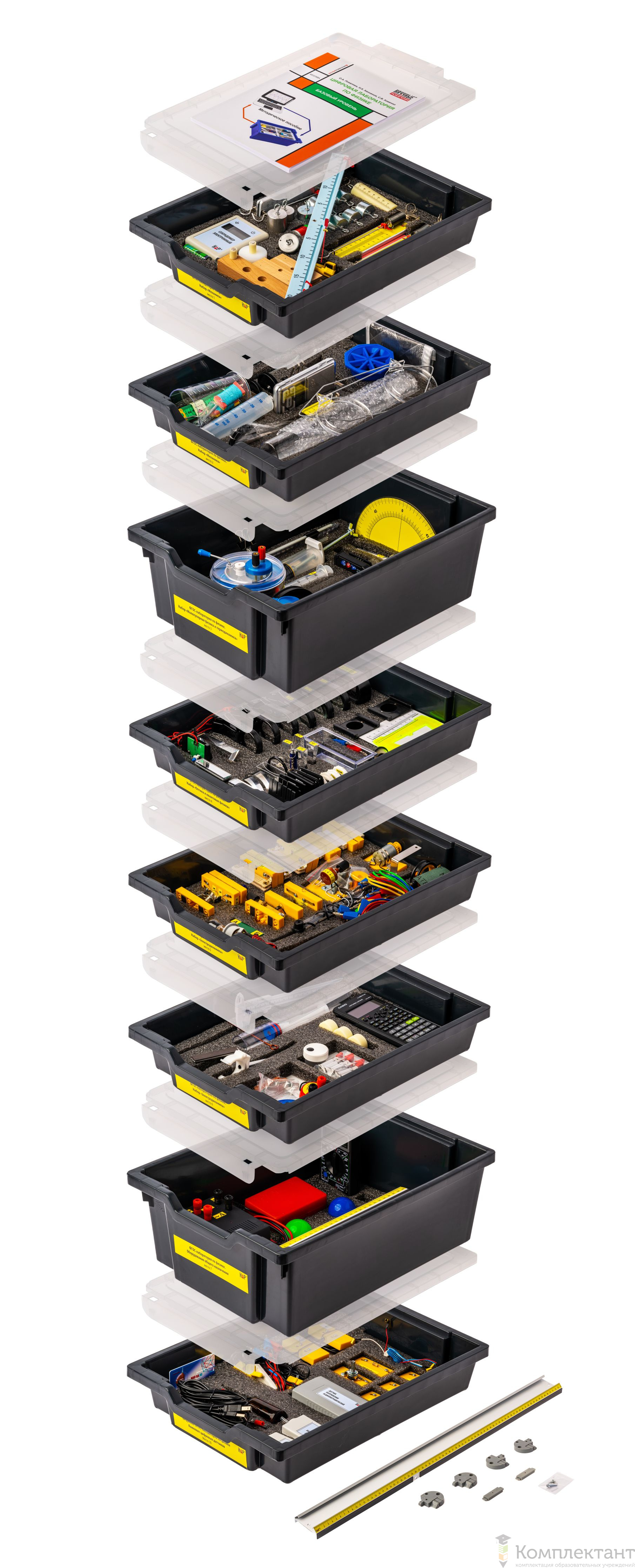 — 9 тематических комплектов, охватывающих весь курс физики с 7 по 11 класс.
